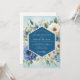 Embrace a serene and elegant aesthetic with this painterly floral design. A beautiful composition of bluebell and cornflower hued blossoms pairs with creamy ivory roses and soft sage greenery. The delicate watercolor artistry creates a dreamy and sophisticated atmosphere perfect for a romantic union.
