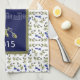Blueberries on vine border pattern, art by Kristie Hubler, with the 2015 calendar as a kitchen tea towel. Enjoy a "fruitful" 2015 new year!