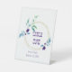It is sturdy than I expected. Was worried about the material being flimsy but it is not. It is printed on some sort of plastic material. It should serve well at our wedding as long as wind isn’t too bad. Otherwise we will put some paper weights behind it and should be fine.