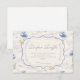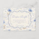 A sweet vintage-inspired design featuring delicate blue bows, soft striped detailing, and charming blueberry garden illustrations. Toile-style artwork with adorable animals and fruit baskets creates a classic storybook feel in a soft powder blue palette. The ornate central frame adds elegance while keeping the overall look light, refined, and timeless. Perfect for a baby shower with a gentle garden theme and a touch of traditional charm.