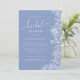 This invitation features white line-drawn flowers and custom calligraphy. The blueberry blue colour is the perfect backdrop for this invitation.