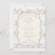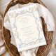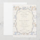 A sweet vintage-inspired design featuring delicate blue bows, soft striped detailing, and charming blueberry garden illustrations. Toile-style artwork with adorable animals and fruit baskets creates a classic storybook feel in a soft powder blue palette. The ornate central frame adds elegance while keeping the overall look light, refined, and timeless. Perfect for a baby shower with a gentle garden theme and a touch of traditional charm.