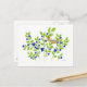 Gnome sleeping in a blueberry bush on this postcard mailer.