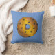 Decorative throw pillow features an original marker illustration of a tasty blueberry cake doughnut on a blue background. Perfect for your favourite foodie!