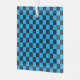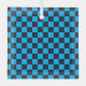 Blue and black checkerboard pattern with evenly spaced squares. The image conveys a sense of order and symmetry, with a vibrant color contrast.