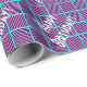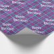 Squares with alternating horizontal and vertical lines in shades of purple and blue are bordered in aqua on this sweet wrapping paper. Change the current text, "Happy Birthday!" to your own message to suit your occasion.