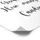My thoughts on this product was excellent. Well printed in a gloss finishing and just the size l ordered. It arrived in good condition and am overall satisfied with the product. The printing turned out great. I was quite surprised with the finishing touch to the poster. The semi gloss was just right and a perfect size to display at the wedding.