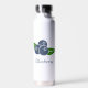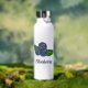 An Insulated Bottle with purple Blueberries and its green leaves: a nice idea to take a cold or hot drink to work or on a hike. Text is customisable!