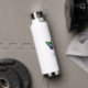 I ordered a custom water bottle and the design came out better than I thought. I like how the water bottle has a gloss finish and feels slick. The letters and numbers on it have an outline you can feel and that’s my favorite part. It doesn’t smell like metal on the inside! That’s what I was scared of. Beautiful work. Will definitely order more in the future. Thank you!