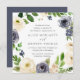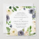 Our square shaped Blueberry Lane wedding invitation surrounds your wedding day details with a wreath of watercolor blossoms and berries in ivory and indigo blue, accented with lush green botanical leaves and foliage.