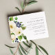 Our Blueberry Lane wedding invitation features your wedding details aligned at the right, accented by indigo blue and ivory watercolor flowers, blueberries, and green foliage.