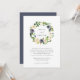 Our Blueberry Lane wedding invitation features your names encircled by a wreath of indigo blue and ivory flowers, tiny blueberries, and lush green watercolor foliage. Personalise this elegant watercolor floral wedding invitation with your wedding details beneath. A beautiful choice for weddings in any season, in a chic colour palette of denim blue, spring green, and off white ivory.