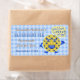These funny labels for your homemade blueberry pie or jam have an angry cartoon pie that's saying, "You want a piece of me?" The background is light blue gingham.