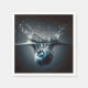 A blueberry plunges into water, causing an energetic splash and bubbles to rise