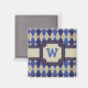 Argyle goes 8-bit with this preppy navy blue, denim blue, and khaki colour scheme with a rich brown contrast stitch creating a perfect look for lovers of this classic pattern. Customise the monogram with the appropriate initial for a personalised touch.