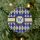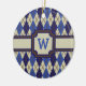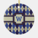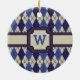 Argyle goes 8-bit with this preppy navy blue, denim blue, and khaki colour scheme with a rich brown contrast stitch creating a perfect look for lovers of this classic pattern. Customise the monogram with the appropriate initial for a personalised touch.