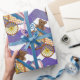 Cute Baby Carriage Purple Chevron Baby Book by ITD Colours Galore features our unique candy colour purple and white zig zag pattern with our signature texture in the background with a textured purple band and decorative centerpiece featuring a cute vintage baby pram holding a cuddly teddy bear. On the back the chevron pattern continues with a purple band that has a pattern of cute baby toys running along through it. Keep track of all your baby's first, starting with your chevron blueberry smear baby shower.