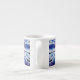 White espresso cup with an image of striking blue and white tie dye. See matching candy jar, flask, pitcher, paper plate, teapot and coasters. See the entire Psychedelic 60s Mug collection in the FOOD/BEV | Dishes section.
