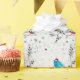 Original design, Bluebird wearing its Santa bonnet, ii a heart on a bed of silver stars.