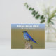 This cool postcard features a stunning photo of a Mountain Bluebird with the text, Idaho State Bird, Mountain Bluebird." Photography created by award-winning photographer Maria Jeffs.