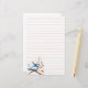 A lined stationery paper featuring a little bluebird perched in a tree with heart shaped leaves accented with tiny dots with pastel pink lines. Great for letter writing, journalling, and more.