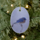 Bluebird in Snowy Winter Trees - Holiday Ceramic Ornament