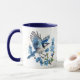 This pretty personalised mug features a beautiful image of a bluebird with outstretched wings landing on a flowering twig covered with pretty blue blossoms. The image is printed twice on the mug, with your name or other text between them. There's a smattering of tiny gold confetti to add a bit of sparkle.
