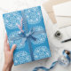 This white mandala sits on a true blue background. The colours are very calming and peaceful. Part of the Rosenn Mandala Collection.