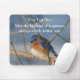 May the bluebird of happiness always reside within you. Pretty little winter bluebird sitting on a branch inspirational nature mousepad. Replace your text in the template, or delete for no text. Click on Customise to change font size, style, and colour. Contact me with design questions or requests. This image is available on many products in my gallery. Please visit Smilin' Eyes Treasures to see more flower and nature photography and digital art cards and gifts.
