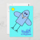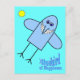 Bluebird of Happiness Postcard. Comical cartoon blue bird with big goofy smile flying in the blue sky with bright yellow sun. Text reads: Bluebird of Happiness. Will bring a smile to anybody's day! Makes a great happy gift for someone who deserves a grin, or perhaps for those who you wish would smile a little bit more! Spread the message of happiness!