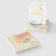 The coasters are gorgeous, a quality feel and heavy weight. They look like a precious archeological find. A rustic stone juxtaposed with a modern floral black and white print. I like the way the print goes slightly imperfect on the cut stone edges giving them a kind-of natural beauty.