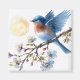 This watercolor bluebird square magnet features a vibrant blue songbird perched on a blooming branch beneath a soft golden sun. Delicate blue blossoms and warm botanical accents create a serene spring-inspired composition that brings a touch of nature indoors.