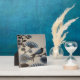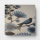 BLUEBIRD PERCHED ON TREE BRANCH WITH BLUE FLOWERS