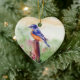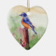 From an original watercolor painting by Brenda Thour of a beautiful bluebird sitting on a post in blues, greens, oranges, browns with a splash of red flowers at the base of the post. Copyright by Brenda Thour 2009.