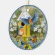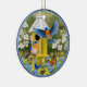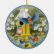 Bluebirds and Tall Yellow Birdhouse Ceramic Ornament