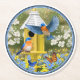 Bluebirds and Tall Yellow Birdhouse Round Paper Coaster