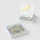 The coasters are gorgeous, a quality feel and heavy weight. They look like a precious archeological find. A rustic stone juxtaposed with a modern floral black and white print. I like the way the print goes slightly imperfect on the cut stone edges giving them a kind-of natural beauty.