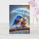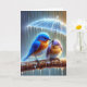 Pair of bluebirds under an umbrella in a rainstorm for thinking of you.