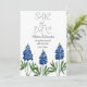 Bluebonnets, watercolor blue floral Wedding save the date. Texas state flowers. Unique, hand painted artwork by artist Monika Howarth. You can personalise it with your details.