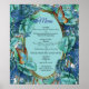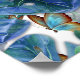 Blueish Turquoise Monstera Leaves & Butterflies Poster