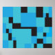 My original abstract art and design. This abstract design has shades of turquoise and aqua blues with black squares and rectangles.