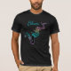 Blues Music Saxophone and Musical Notes T-Shirt. A dark saxophone with a blue glow playing a colourful rainbow wave of musical notes. A great gift for your favourite sax player, musician or blues music lover.