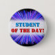This eyecatching design features a pattern of lines coloured various shades of blue or purple that appear to be bursting out from a central point. It also features the message, "STUDENT OF THE DAY!". It could perhaps be used by a teacher or educator to reward or acknowledge a student who has done well.