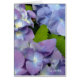 Three hydrangeas display many shades of blue in this pretty, floral image, digitised as an "oil painting". With matching stamps.