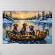 Bring distinctive, mottled charm to your holiday season with this unique Bluetick Coonhound Christmas design! This magical scene features three handsome, speckled-coat Bluetick Coonhounds sitting attentively in a cozy wooden boat, gently floating on a serene snowy lake at sunset. The boat is beautifully adorned with glowing Christmas string lights and fragrant pine garlands, while the dogs wear festive scarves. They are surrounded by colorful wrapped presents and cheerful holly branches. Soft snowflakes gently fall, and the shimmering reflection of the lights on the water creates a truly magical winter holiday atmosphere. This design is a perfect Christmas gift for any Bluetick Coonhound owner, dog lover, or admirer of festive and devoted scent hound art, capturing the serene joy of the season.