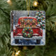 Bluetick Coonhound Christmas Red Truck Holiday Ceramic Ornament