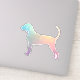 Bluetick Coonhound hunting dog breed side view silhouette filled with colourful pastel geometric pattern. This dog breed can also represent: Black and Tan, Coonhound, hunting, hound, Hanover Hound, Bracco Italiano, French white and black hound, Bleu de Gascogne, Large Blue Gascony Hound, Petit Gascon Saintongeois, Spanish Pointer, Burgos Pointer, Latvian hound, Austrian black and tan, Ariegeois, Artois