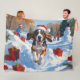 Bluetick Coonhound Running in Snow with Christmas Fleece Blanket