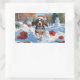 Bluetick Coonhound Running in Snow with Christmas Rectangular Sticker