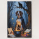 Step into a magical Halloween night with this whimsical oil painting featuring an adorable pup dressed in a mini witch cloak, seated beside a bubbling cauldron in a shadowy forest. Surrounded by glowing potions, old spellbooks, and twinkling magical sparks, the scene is filled with mystery and charm. Rich painterly textures and deep Halloween hues create a cosy, enchanted vibe perfect for spooky season lovers.